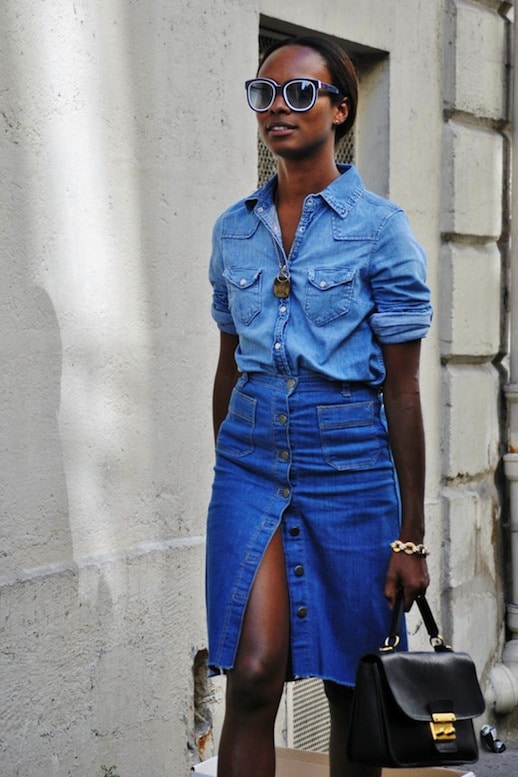Pour le quotidien au bureau, la jupe en jean version crayon, ceinturée, associée à une chemise, s’impose sans effort. Le denim ne se cantonne vraiment plus aux jours de détente.